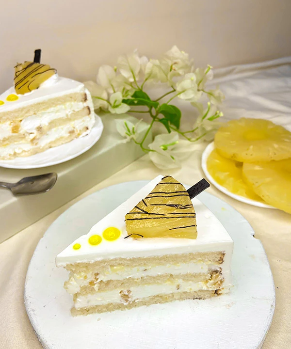 A light and fluffy pineapple cake bursting with tropical sweetness, layered with tangy pineapple filling and creamy whipped frosting.