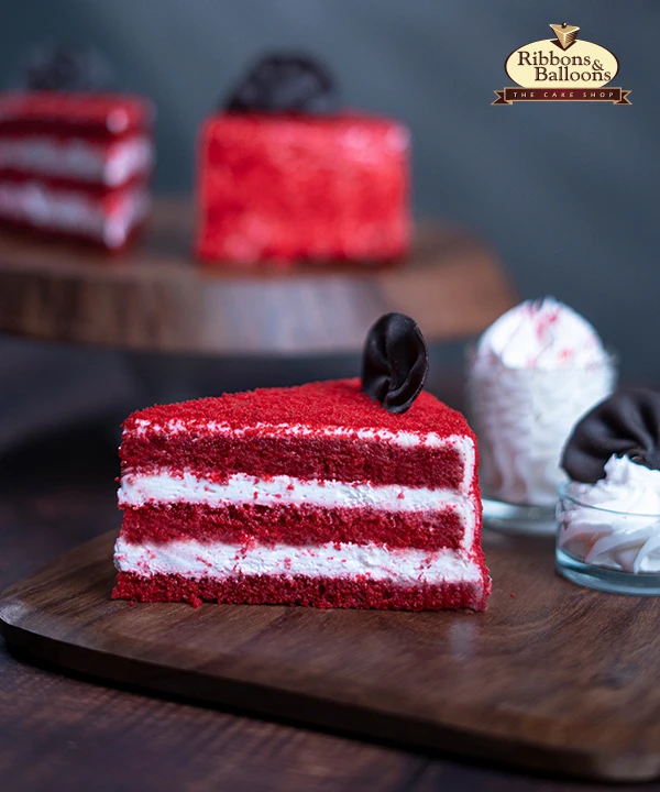 A smooth, moist red velvet cake layered with tangy cream frosting, offering a perfect balance.